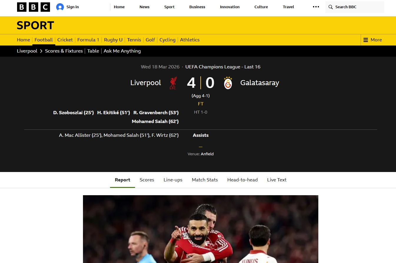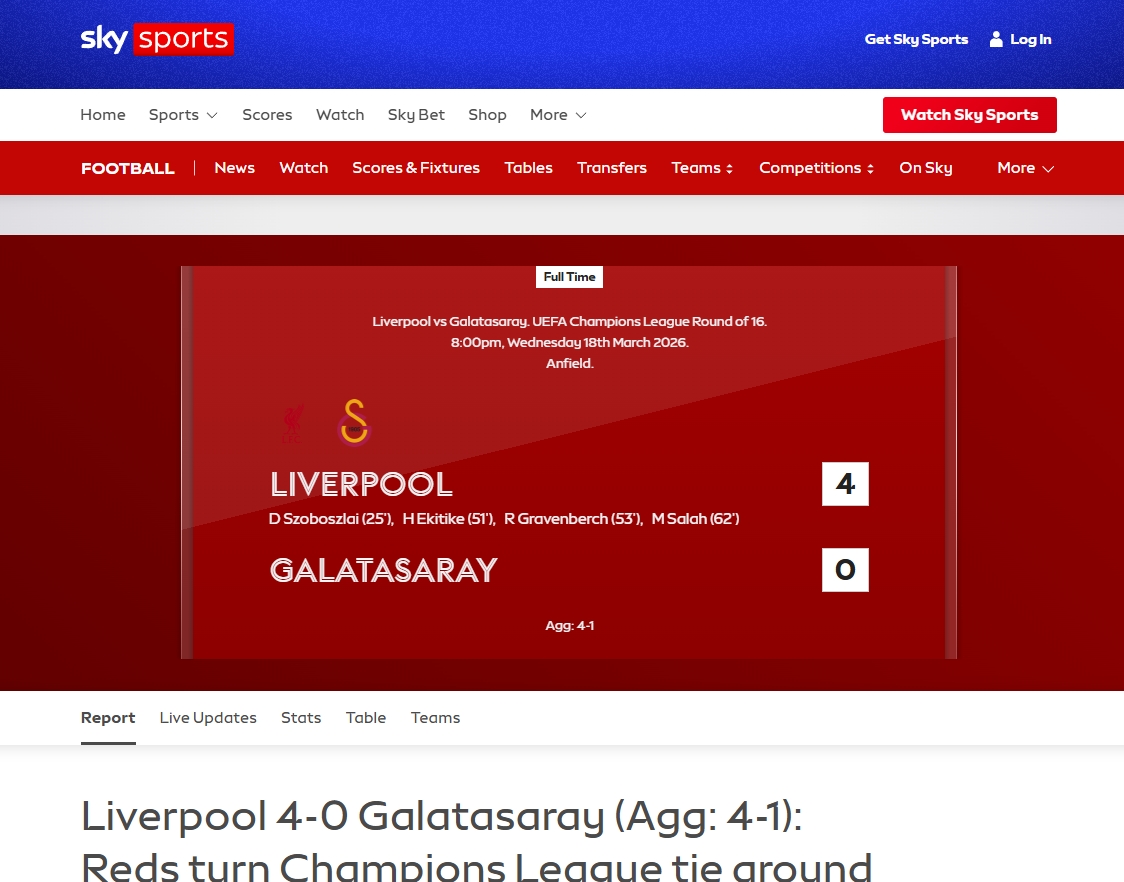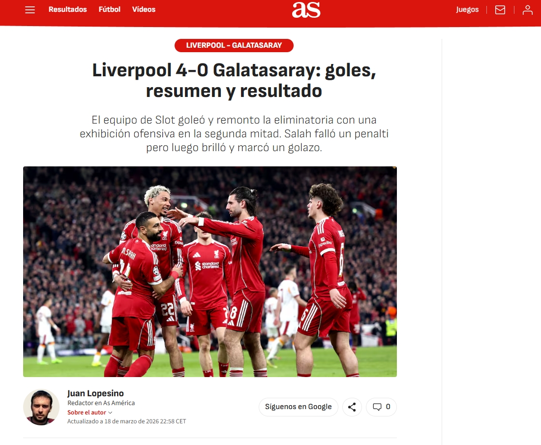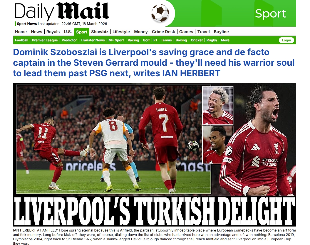 Galatasaray, UEFA Şampiyonlar Ligi Son 16 Turu'nda 1-0 kazandığı ilk maçın rövanşında deplasmanda Liverpool'a 4-0 mağlup oldu ve turnuvaya veda etti. İşte mücadele sonrası yabancı basında atılan manşetler...