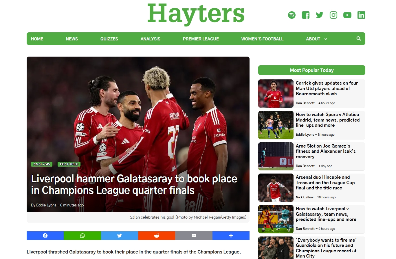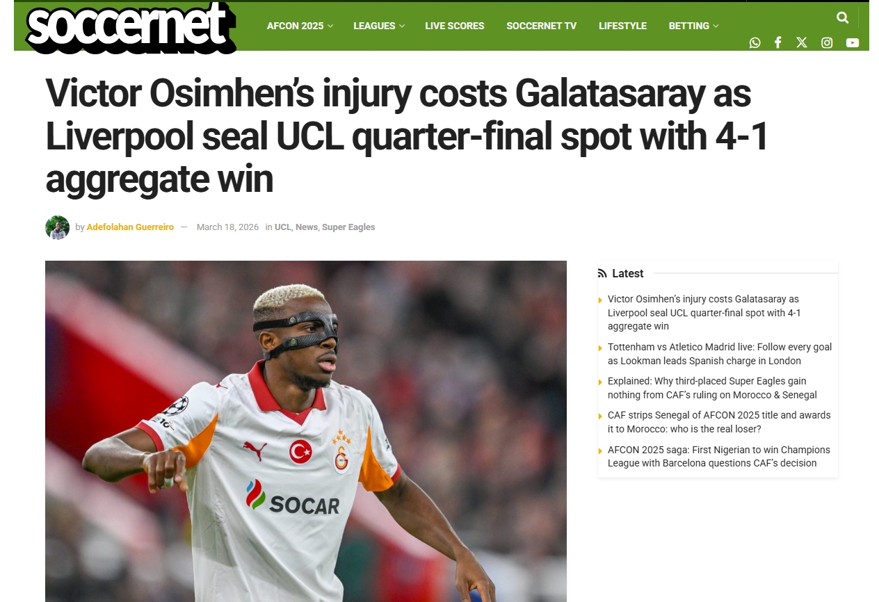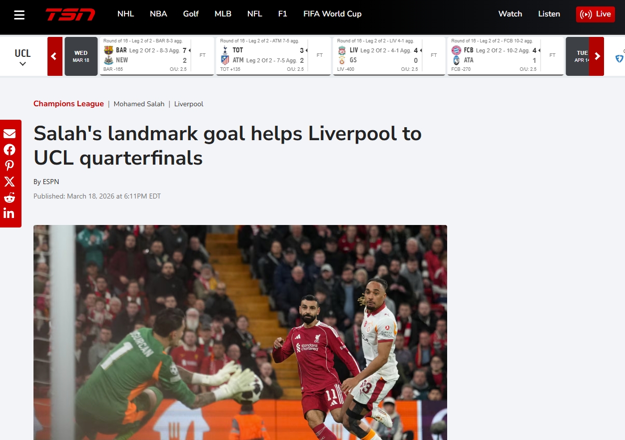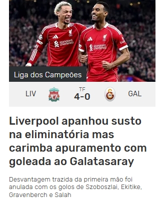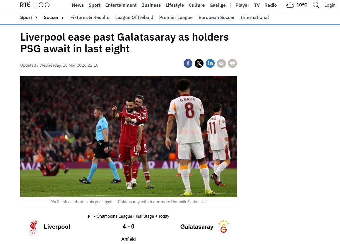 Galatasaray, UEFA Şampiyonlar Ligi Son 16 Turu'nda 1-0 kazandığı ilk maçın rövanşında deplasmanda Liverpool'a 4-0 mağlup oldu ve turnuvaya veda etti. İşte mücadele sonrası yabancı basında atılan manşetler...