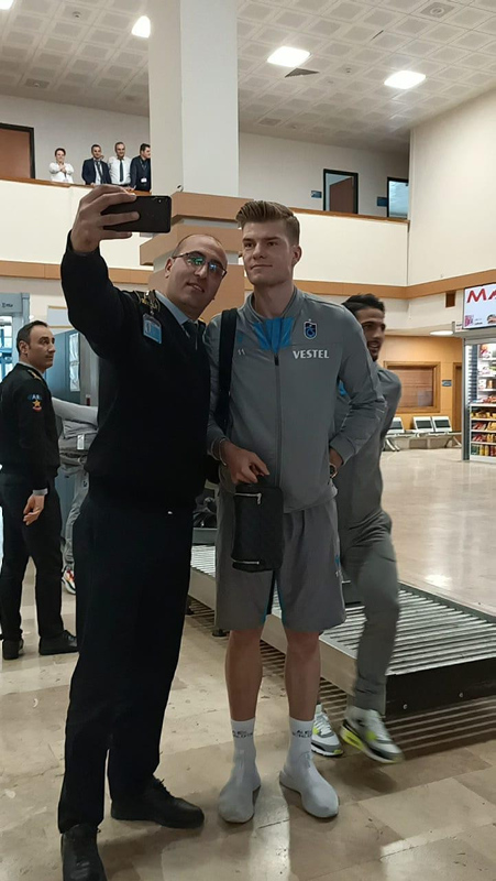 Attığı gollerle takımını ligin zirvesine taşıyan Sörloth'a havalimanında taraftarlar yoğun ilgi gösterirken, tedavisi süren Pereira ve Hosseini dışında tüm futbolcular kadroda yer aldı.