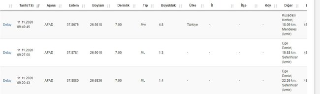 Afet ve Acil Durum Yönetimi Başkanlığı ile Kandilli Rasathanesi ve Deprem Araştırma Enstitüsü de gerçekleşen depremleri anbean paylaşıyor. Son olarak AFAD'dan yapılan açıklamaya göre bugün saat 09.49 sularında Kuşadası Körfezi merkezli 4.8 büyüklüğünde bir deprem yaşandı. Kandilli Rasathanesi de yine aynı şekilde 4.8'lik depremi resmi internet sitesinden duyurdu.