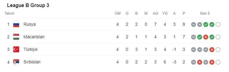 A Milli Futbol Takımımız, UEFA Uluslar Ligi B Ligi 3. Grup'taki 4. maçında Sırbistan'ı konuk etti. Milliler mücadeleden 2-2'lik beraberlikle ayrılırken puanını 3'e yükseltti. İşte güncel puan durumu.