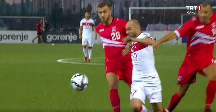 Ay-Yıldızlılar, Victoria Stadyumu'nda oynanan maçın henüz 2. dakikasında penaltı kazandı. Maçın hakemi Kristo Tohver, Efecan Karaca'nın Cebelitarık ceza sahasında yer kaldığı pozisyon sonrası yardımcının uyarısıyla penaltı noktasını gösterdi.
