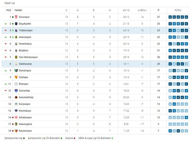 İŞTE GÜNCEL PUAN DURUMU