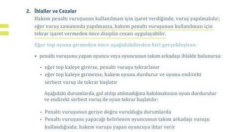 Emre Kılınç'ın penaltı atışını kullandığı sırada Mert Hakan Yandaş'ın ceza sahasına girdiği ve kurallar gereği hakem Mete Kalkavan'ın Galatasaray lehine endirekt serbest vuruş vermesi gerektiği belirtildi.