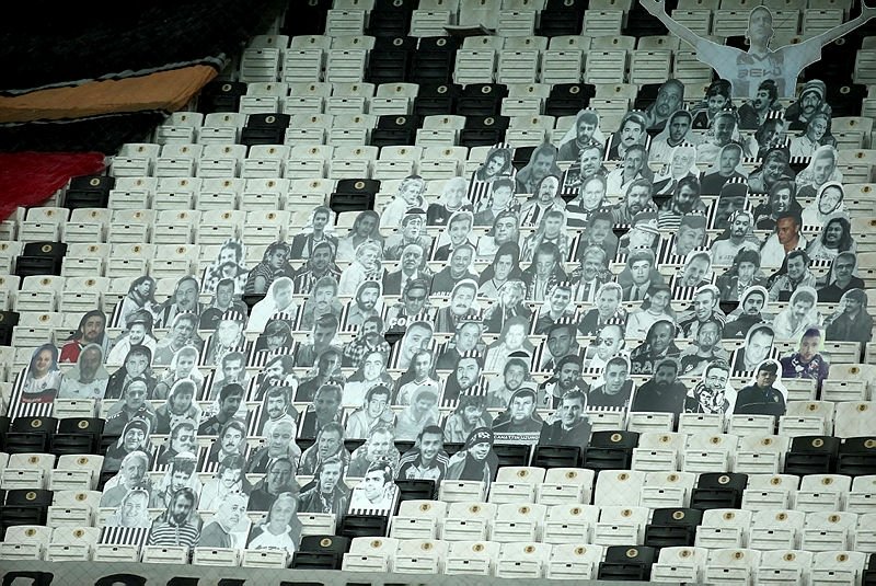 Beşiktaş yönetiminin 4 iç saha maçı için 'Ruhumuz Yeter' sloganıyla başlattığı taraftar kartonetleri karşılaşmadan önce tribünlere yerleştirildi.