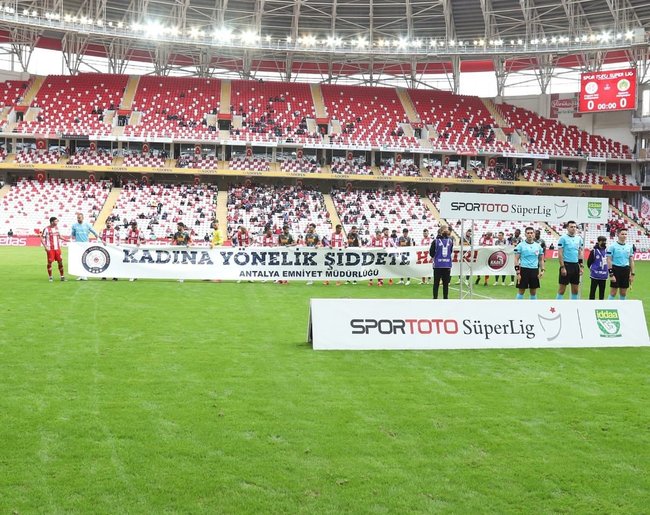 Süper Lig'in 14. haftasında Antalyaspor ile Alanyaspor karşı karşıya geldi. Mücadele öncesinde kadına yönelik şiddete dikkat çekildi.