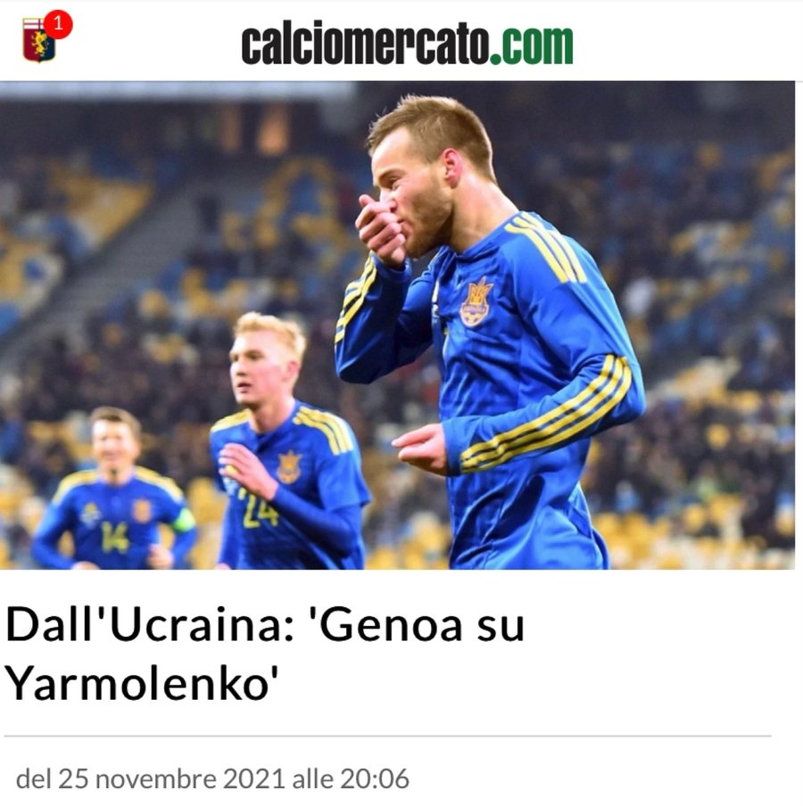 Fotomaç'ın İtalyan basınından derlediği habere göre, İtalya Serie A ekiplerinden Genoa'nın, Ocak ayı transfer döneminde Andriy Yarmolenko'yu renklerine bağlayabileceği aktarıldı.