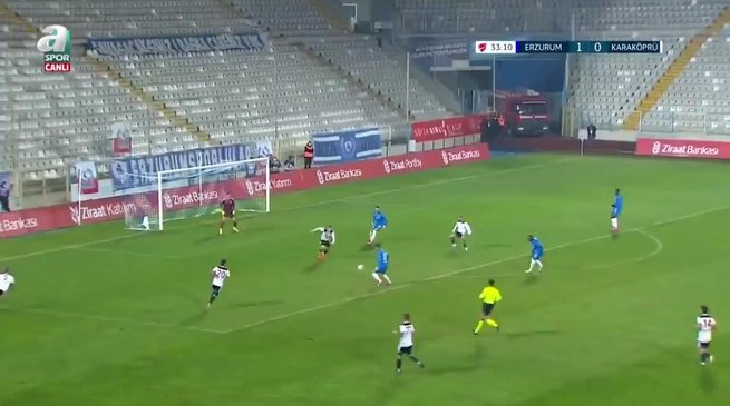 8. dakikada Büyükşehir Belediye Erzurumspor öne geçti. Sissoko'nun pasıyla ceza sahasının sağ çaprazında topla buluşan Rashad Muhammed'in sert şutunda top ağlara gitti: 1-0.
