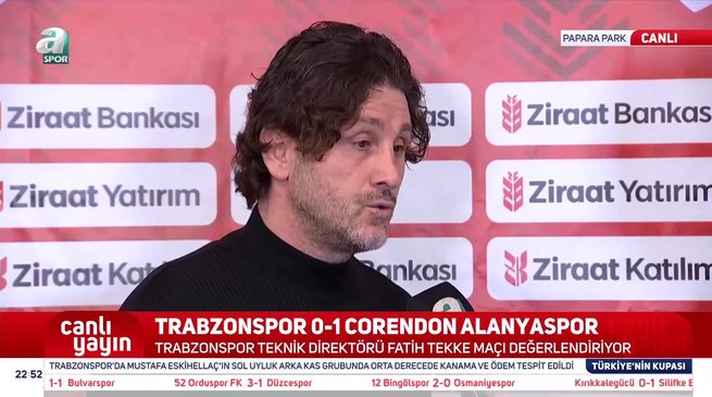 Ziraat Türkiye Kupası A Grubu ilk maçında Trabzonspor, sahasında konuk ettiği Alanyaspor'a 1-0 mağlup oldu. Bordo-mavililerde karşılaşmanın ardından teknik direktör Fatih Tekke, müsabakayı ve takımının performansını değerlendirdi.