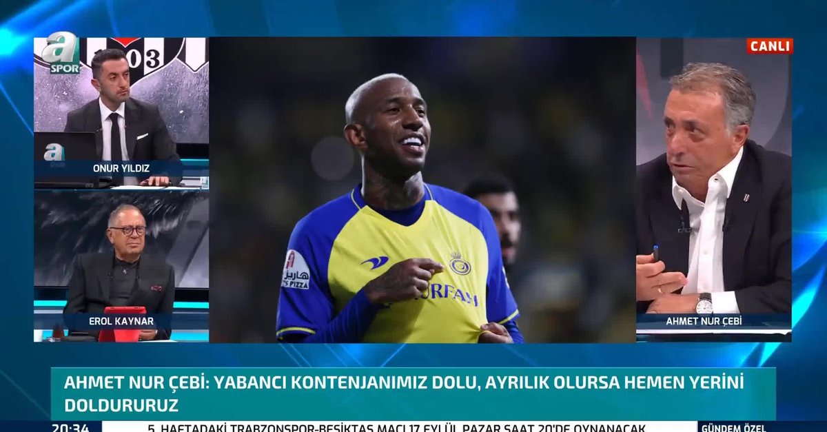 Son dakika Beşiktaş transfer haberleri: Beşiktaş Başkanı Ahmet Nur Çebi, A Spor'a özel açıklamalarda bulundu. Çebi, yaz transfer döneminde siyah-beyazlıların gündemine gelen Anderson Talisca ile ilgili çarpıcı ifadeler kullandı. (BJK spor haberi)