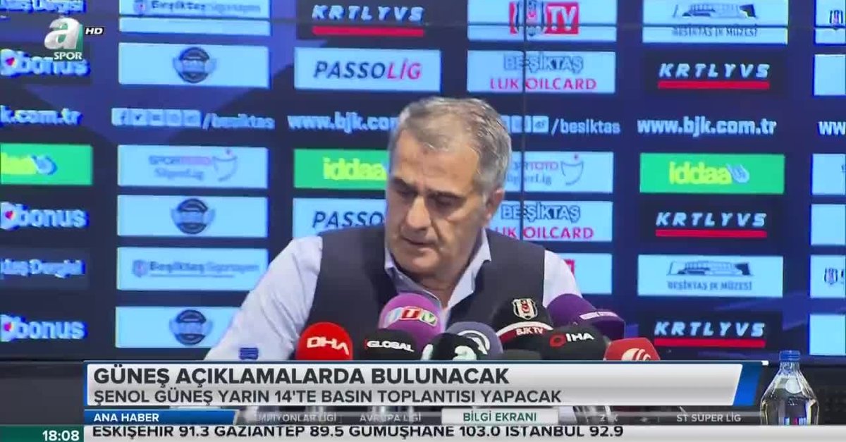 Beşiktaş Teknik Direktörü Şenol Güneş gündemdeki konulara dair açıklamalar yapmak üzere yarın saat 14.00'te basın toplantısı düzenleme kararı aldı.